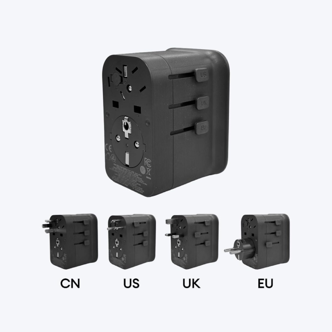 Measuring roughly 3.4 x 2.6 x 2.6 inches and weighing around 305g, this all-in-one unit combines plug adaptation and charging in a slim, lightweight form factor that fits easily into carry-on bags or pockets. The sliding or retractable plug mechanism adds convenience without bulk, perfect for frequent travelers.