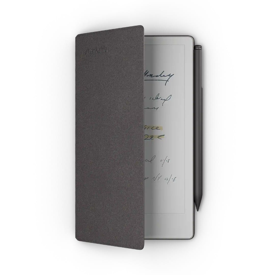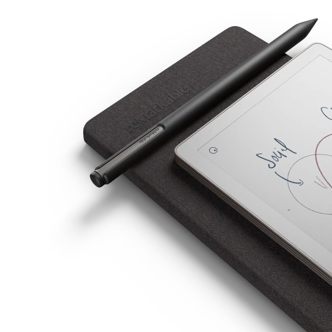 The Book Folio for reMarkable Paper Pro Move is a premium protective cover engineered specifically for the 7.3-inch reMarkable Paper Pro Move tablet, blending minimalist elegance with functional design to safeguard your device during travel or daily use without compromising its slim profile. Crafted from high-quality materials like responsibly sourced premium leather in Black or Brown, or 100% recycled Mosaic weave in Basalt, Burgundy, or Cobalt for an eco-conscious option, it opens like a traditional book and folds flat for seamless note-taking, with built-in magnets that securely snap the tablet into place for stable writing sessions. A dedicated magnetic strap holds the Marker stylus firmly attached when on the go, snapping neatly to the back during active use, while the soft microfiber interior prevents scratches on the Canvas Color display. Compatible exclusively with the Paper Pro Move’s dimensions, it features auto-wake functionality upon opening to instantly resume your workflow, weighing just 150 grams and measuring 8.5 x 5.5 x 0.3 inches when closed, making it the perfect companion for professionals seeking a notebook-like aesthetic that ages beautifully over time.