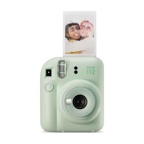 The Fujifilm Instax Mini 12 Instant Camera is a vibrant, user-friendly analog camera designed for instant photography enthusiasts, delivering credit-card-sized prints (62mm x 46mm) on Fujifilm Instax Mini film that develop in about 90 seconds. Available in five playful colors—Pastel Blue, Mint Green, Blossom Pink, Lilac Purple, and Clay White—this compact camera features a FUJINON 60mm f/12.7 lens, automatic exposure, and a constant flash with a 0.3m to 2.2m range for effortless point-and-shoot operation. Its selfie mode, complete with a built-in mirror and parallax-corrected close-up mode (0.3m to 0.5m), ensures sharp selfies, while the real image viewfinder (0.37x) aids framing. Powered by two AA batteries, it offers a battery life of approximately 100 shots (10 film packs) and includes a film counter and confirmation window for ease of use.