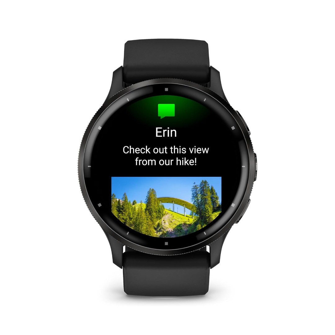 The Garmin Venu 3 features a vibrant 1.4-inch AMOLED touchscreen display with 454 x 454 pixel resolution and always-on capability, protected by Corning Gorilla Glass 3. This bright, colorful screen delivers sharp visuals for maps, workout data, notifications, and watch faces, with excellent readability in various lighting conditions and a sleek, modern look that makes the watch suitable for both fitness and daily wear.