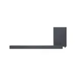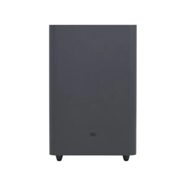 The soundbar supports JBL Surround Sound and includes built-in Dolby Digital decoding, enhancing the audio experience by delivering rich, cinematic sound quality.