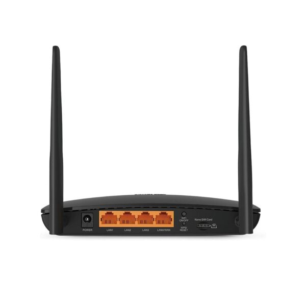 The TP-Link TL-MR6400 is a 4G LTE Wi-Fi router designed to provide robust internet connectivity with impressive wireless speeds. Equipped with an integrated 4G LTE modem and a built-in SIM card slot, it supports download speeds of up to 150 Mbps and wireless N speeds of up to 300 Mbps on the 2.4 GHz band. The router features two detachable advanced LTE antennas to ensure stable and efficient connections. Additionally, it offers a fully functional WAN/LAN port, allowing it to function as a traditional router compatible with cable, fiber, and DSL modems. With support for up to 32 Wi-Fi devices, the TL-MR6400 is an ideal solution for sharing a 4G LTE network across multiple devices in various settings.