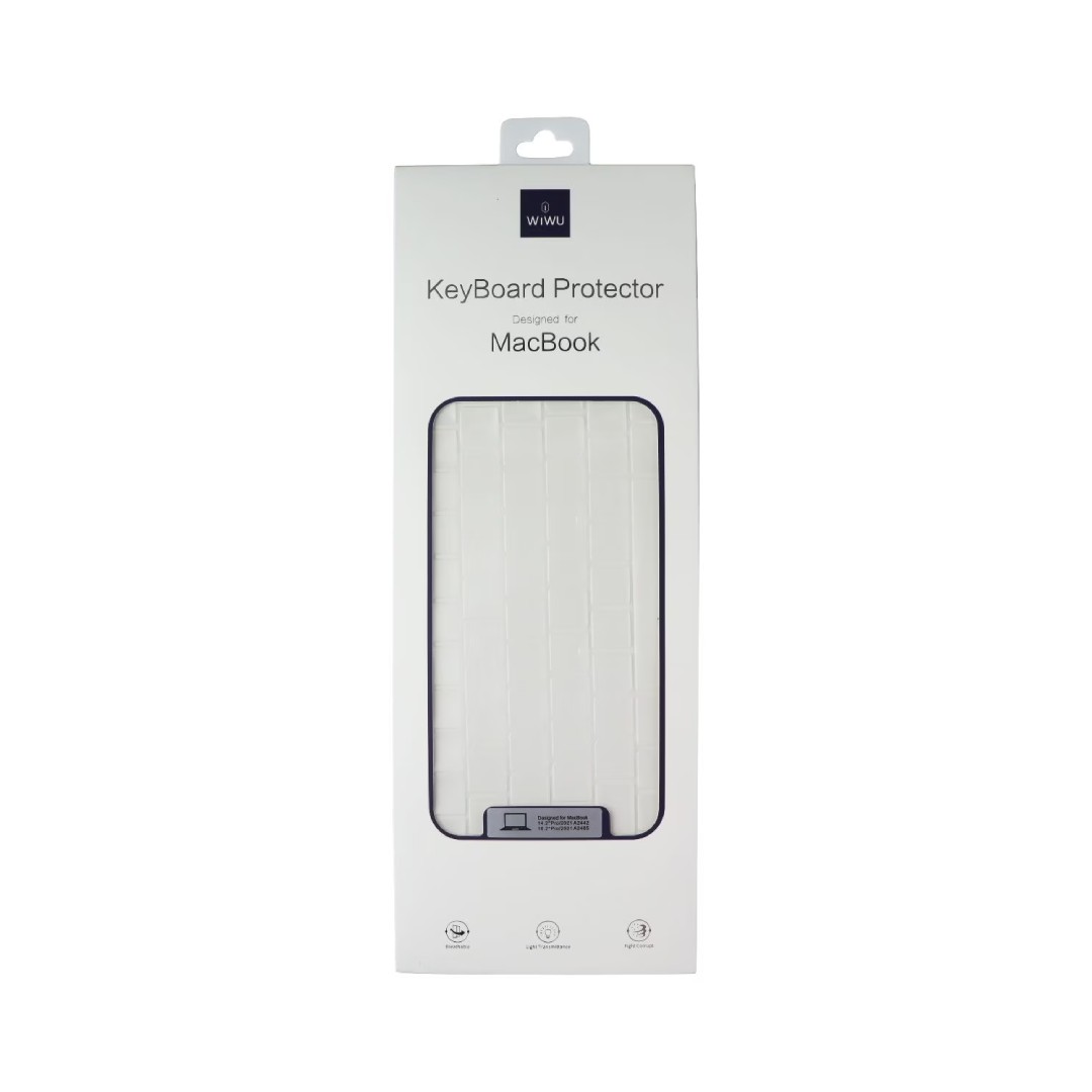 The WIWU Keyboard Protector for MacBook 14.2 & 16.2 Keyboard Film is a premium, ultra-thin accessory designed specifically for MacBook Pro models with 14.2-inch (2021/2023/2024 models, A2442/M1 Pro/Max, M2/M3/M4 variants) and 16.2-inch (A2485) displays, providing precise, tailored protection for the keyboard without compromising typing feel or aesthetics. Crafted from high-grade, eco-friendly TPU (thermoplastic polyurethane) material, this flexible and durable film offers excellent waterproofing and dustproofing to shield keys from spills (like coffee, water, or milk), fingerprints, oils, dirt, key wear, and everyday grime while remaining breathable to prevent moisture buildup or heat trapping under the keys. Its 1:1 precision molding ensures a perfect fit with individual key cutouts (including the Touch Bar or function row where applicable), maintaining full key visibility, light transmittance for clear backlighting, and a matte or transparent finish that resists fingerprints and adds a non-slip texture for comfortable, accurate typing. Ultra-thin construction (typically 0.1–0.2mm) adds virtually no bulk, stays securely in place without adhesive residue or shifting during use, and is easy to install/remove for cleaning—simply wash with water and air dry. Available in clear/transparent or frosted variants for a sleek, invisible look that preserves the MacBook’s premium appearance, this protector is an essential, affordable upgrade for professionals, students, or anyone seeking long-lasting keyboard defense against daily hazards while keeping the typing experience natural and responsive.