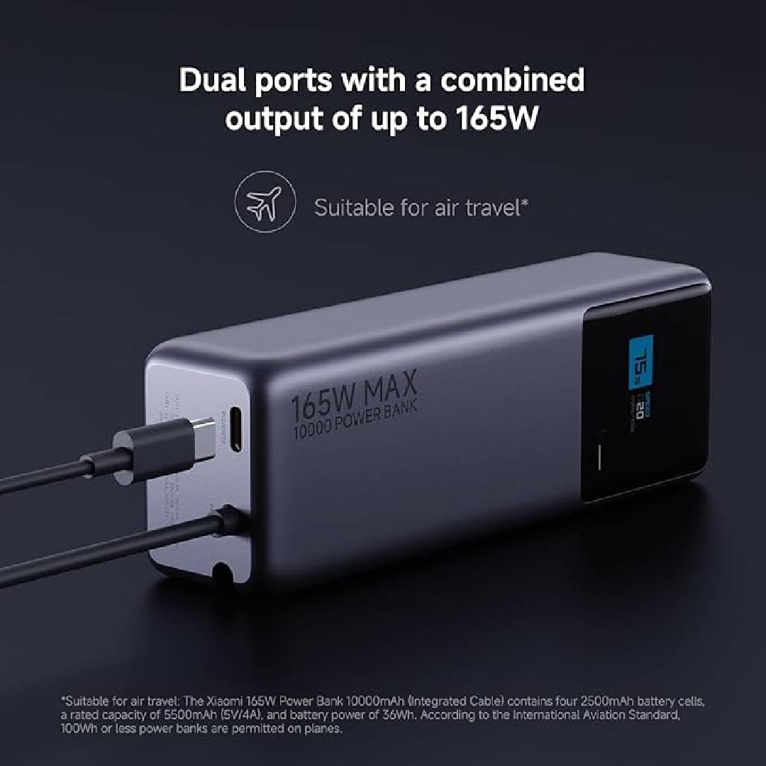 The Xiaomi 165W Power Bank 10000mAh is a compact but extremely powerful portable charger designed for users who need fast, reliable power on the go. With a combined output of up to 165W, this power bank can charge high-performance laptops, smartphones, tablets, and gaming devices with ease. The built-in USB-C cable adds convenience, while intelligent power management ensures safe and efficient charging every time.